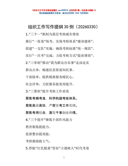/ 组织工作写作提纲30例(20260330)
