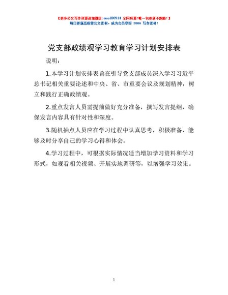 党支部政绩观学习教育学习计划安排表