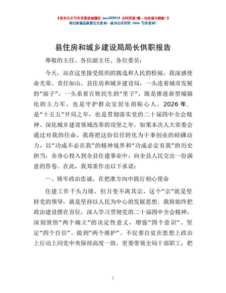 / 县住房和城乡建设局局长供职报告
