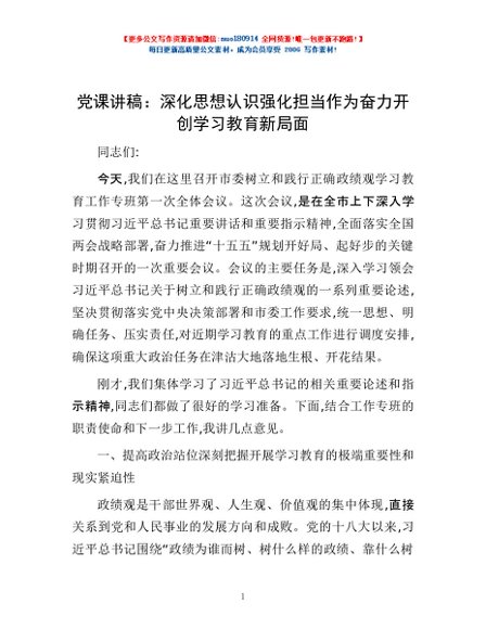 / 党课讲稿:深化思想认识 强化担当作为 奋力开创学习教育新局面