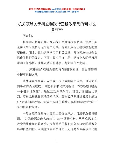 / 机关领导关于树立和践行正确政绩观的研讨发言材料