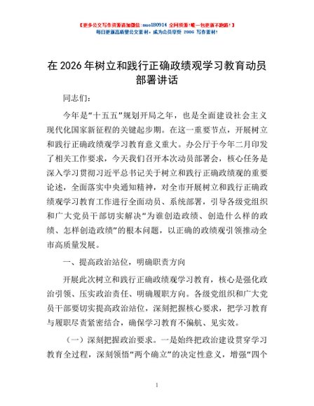 / 在2026年树立和践行正确政绩观学习教育动员部署讲话