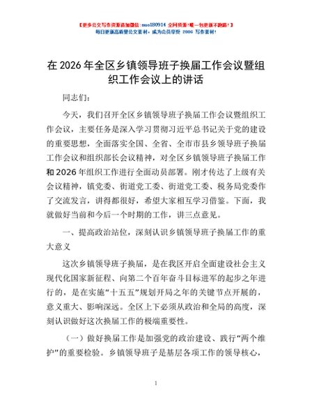/ 在2026年全区乡镇领导班子换届工作会议暨组织工作会议上的讲话