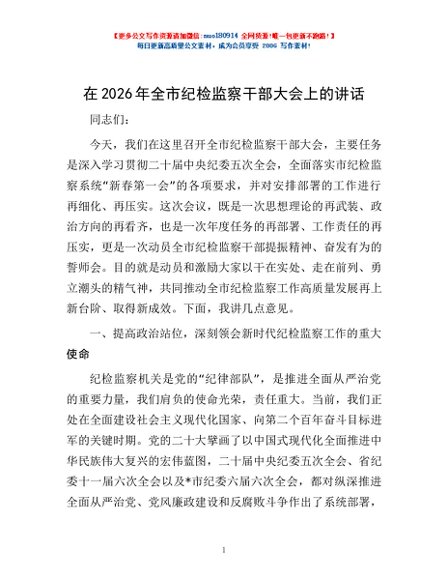 在市卫健委2026年度全面从严治党暨党风廉政建设工作会议上的讲话