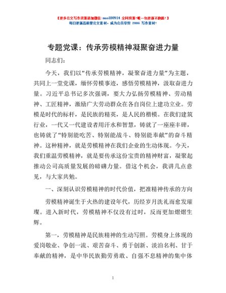 / 专题党课:传承劳模精神 凝聚奋进力量