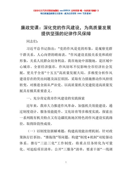 / 廉政党课:深化党的作风建设,为高质量发展提供坚强的纪律作风保障