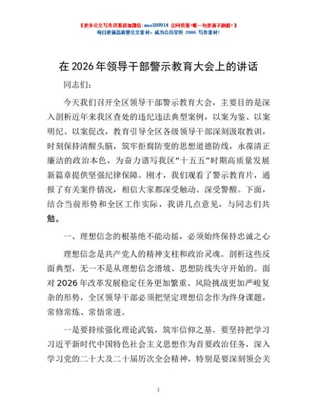 / 在2026年领导干部警示教育大会上的讲话