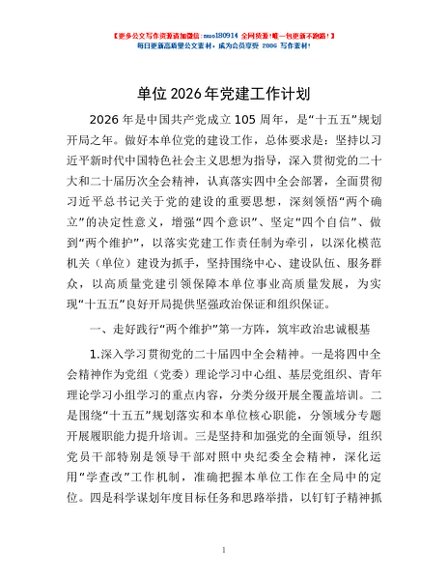 / 单位2026年党建工作计划