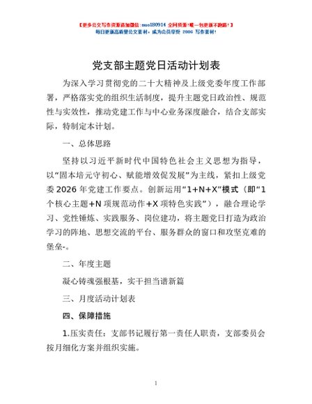 / 党支部主题党日活动计划表