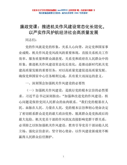 廉政党课:推进机关作风建设常态化长效化,以严实作风护航经济社会高质量发展