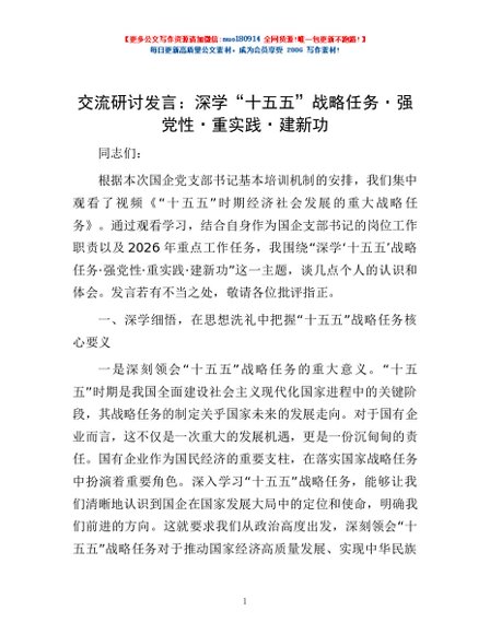 交流研讨发言:深学“十五五”战略任务·强党性·重实践·建新功