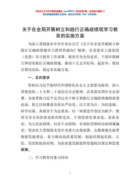 / 关于在全局开展树立和践行正确政绩观学习教育的实施方案