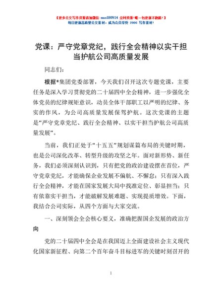 / 党课:严守党章党纪,践行全会精神以实干担当护航公司高质量发展