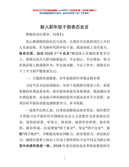 / 新入职年轻干部表态发言