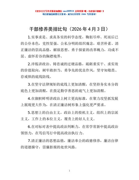 / 干部修养类排比句(2026年4月3日)