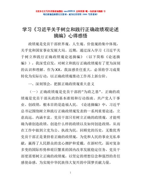/ 学习《习近平关于树立和践行正确政绩观论述摘编》心得感悟