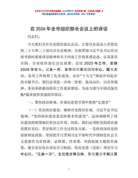 / 在2026年全市组织部长会议上的讲话