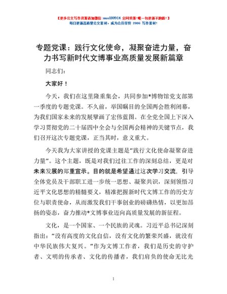 / 专题党课:践行文化使命,凝聚奋进力量,奋力书写新时代文博事业高质量发展新篇章