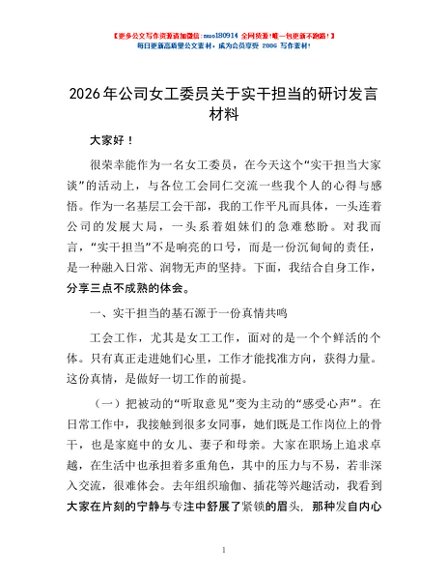 / 2026年公司女工委员关于实干担当的研讨发言材料