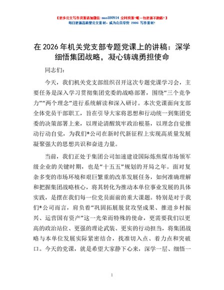 / 在2026年机关党支部专题党课上的讲稿:深学细悟集团战略,凝心铸魂勇担使命