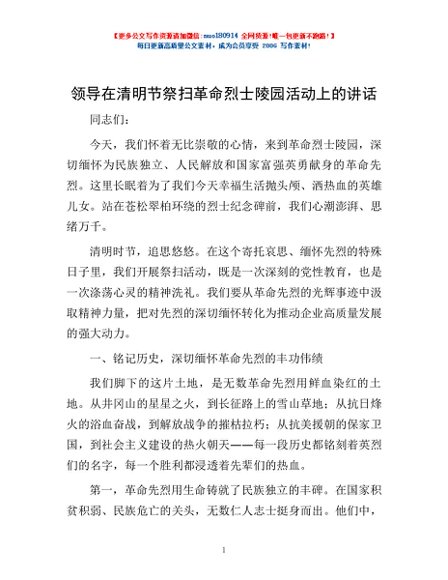 / 领导在清明节祭扫革命烈士陵园活动上的讲话