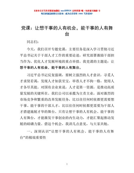 / 党课:让想干事的人有机会,能干事的人有舞台