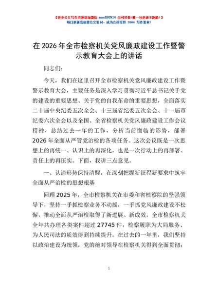 / 在2026年全市检察机关党风廉政建设工作暨警示教育大会上的讲话