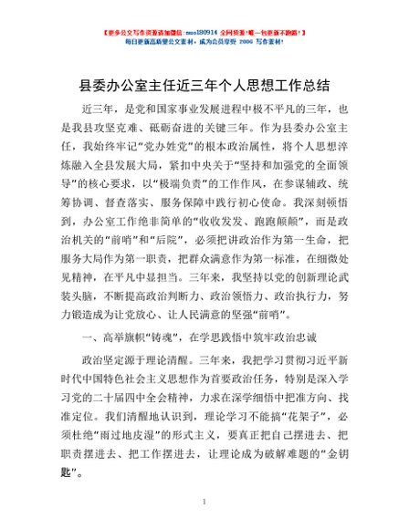 / 县委办公室主任近三年个人思想工作总结
