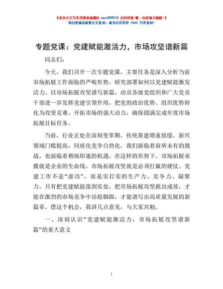 专题党课:党建赋能激活力,市场攻坚谱新篇