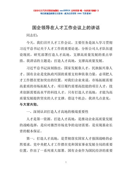 / 国企领导在人才工作会议上的讲话