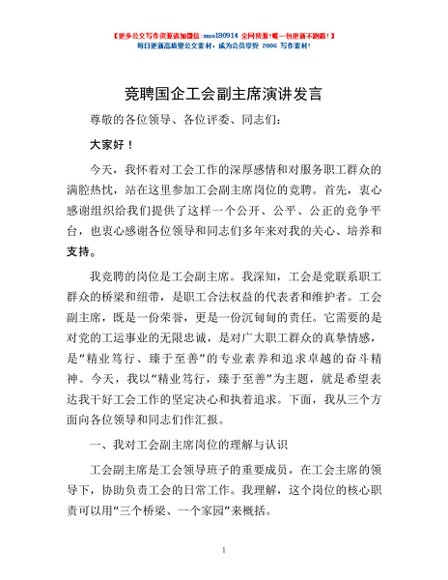 / 竞聘国企工会副主席演讲发言