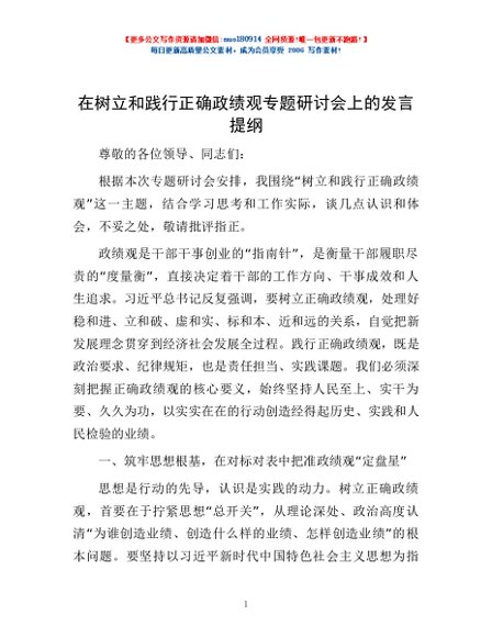 / 在树立和践行正确政绩观专题研讨会上的发言提纲