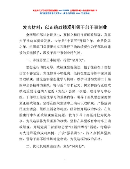 / 发言材料:以正确政绩观 引领干部干事创业