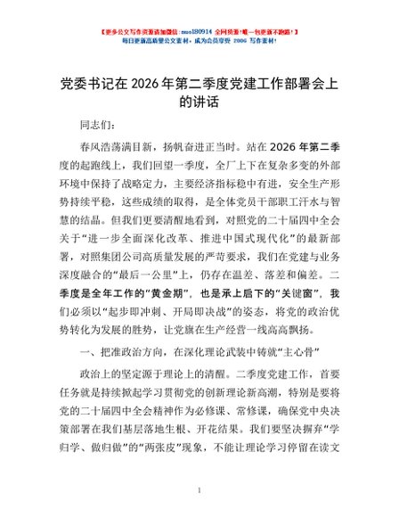 / 党委书记在2026年第二季度党建工作部署会上的讲话