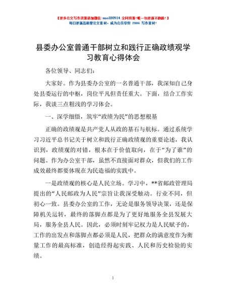 / 县委办公室普通干部树立和践行正确政绩观学习教育心得体会