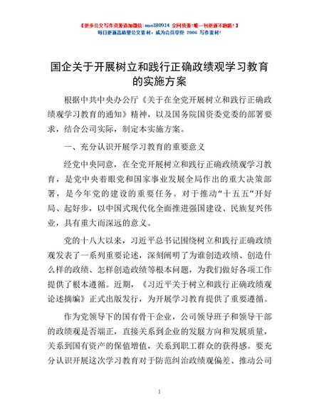 / 国企关于开展树立和践行正确政绩观学习教育的实施方案