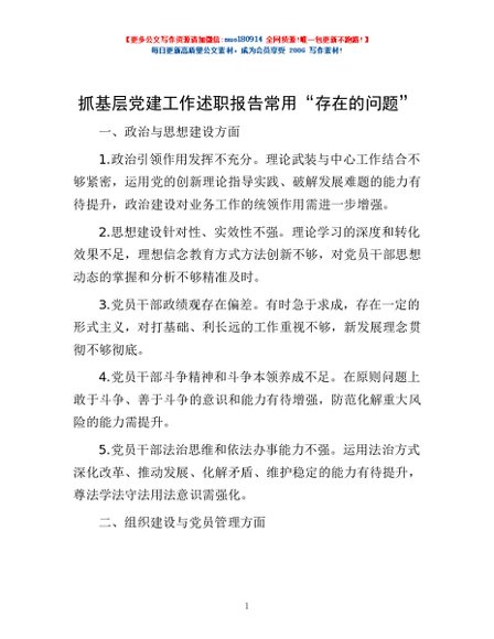 / 抓基层党建工作述职报告常用“存在的问题”