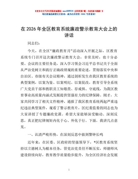 / 在2026年全区教育系统廉政警示教育大会上的讲话