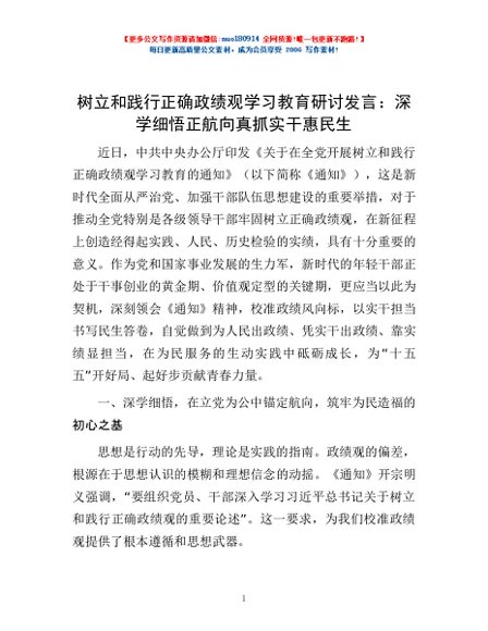 / 树立和践行正确政绩观学习教育研讨发言:深学细悟正航向 真抓实干惠民生