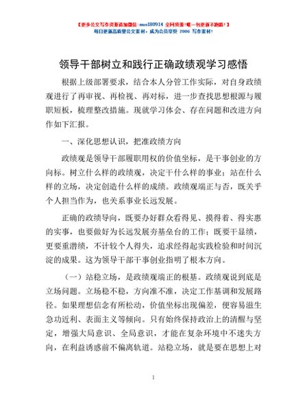 / 领导干部树立和践行正确政绩观学习感悟
