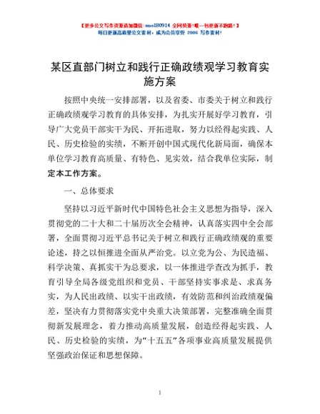 / 某区直部门树立和践行正确政绩观学习教育实施方案