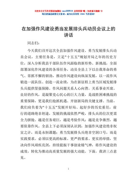 / 在加强作风建设勇当发展排头兵动员会议上的讲话