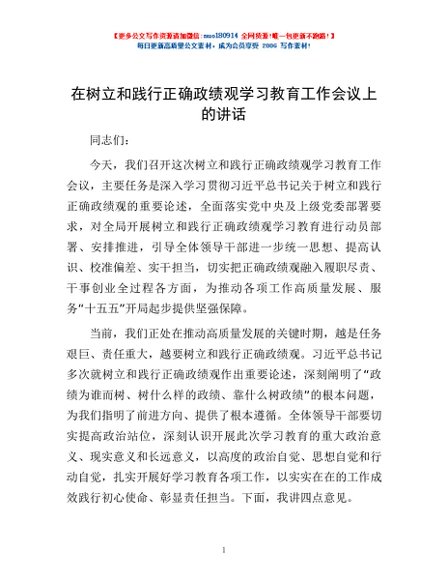 / 在树立和践行正确政绩观学习教育工作会议上的讲话