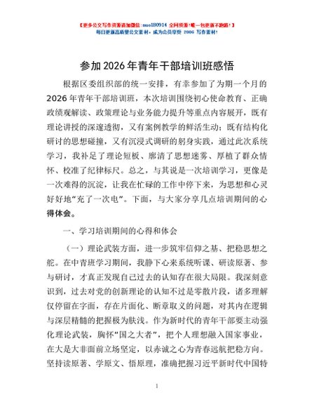 / 参加2026年青年干部培训班感悟