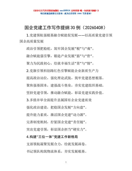 / 国企党建工作写作提纲30例(20260408)