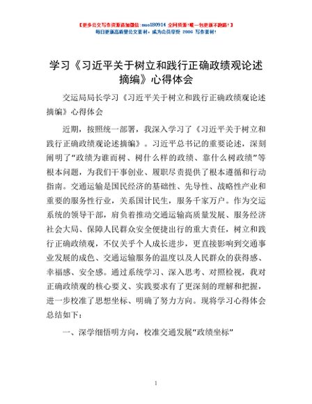 / 学习《习近平关于树立和践行正确政绩观论述摘编》心得体会