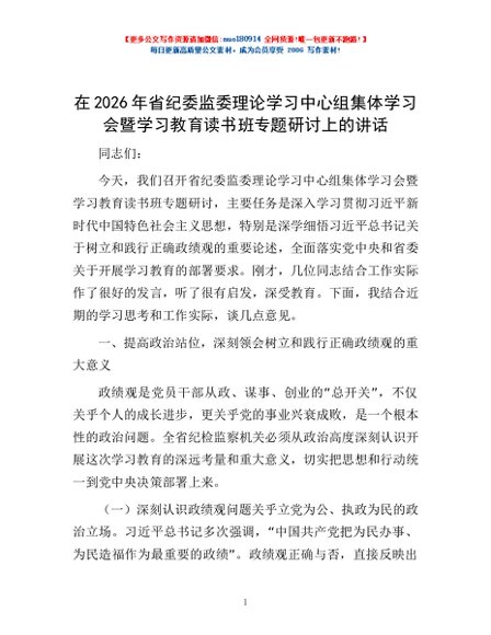 / 在2026年省纪委监委理论学习中心组集体学习会暨学习教育读书班专题研讨上的讲话