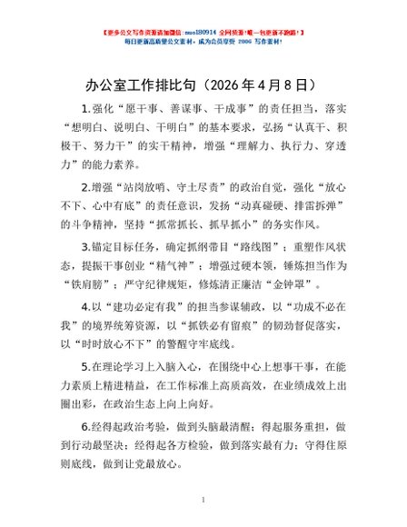 / 办公室工作排比句(2026年4月8日)