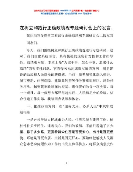 / 在树立和践行正确政绩观专题研讨会上的发言.