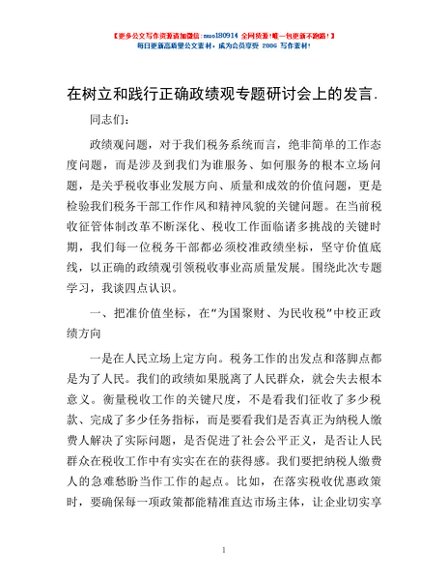 在树立和践行正确政绩观专题研讨会上的发言.